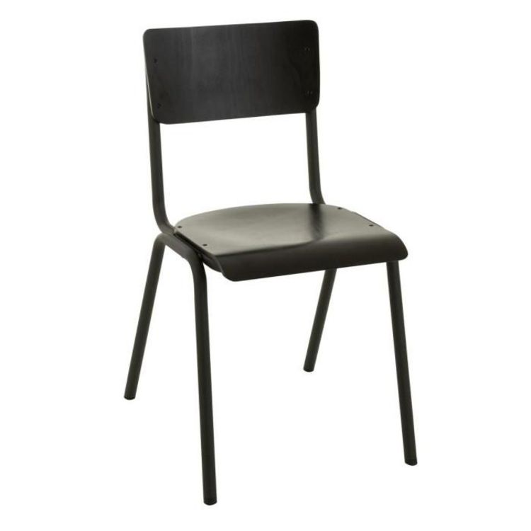 Informations Techniques : Dimensions : L. 52 x l. 43 x H. 82 cm Assise : H. 46 cm Matières : 70% Métal & 30% Bois (Peuplier) Spécificités : Rétro & Pratique Chaise vintage Poids max supporté : 150 kg Poids : 4,5 kg Couleur : Noir