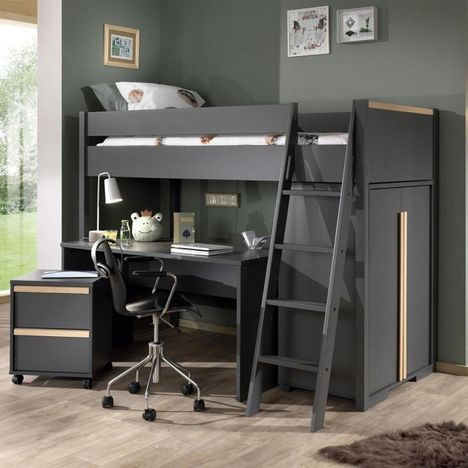 Combinaison lit + garde-robe + bureau et rangement anthracite