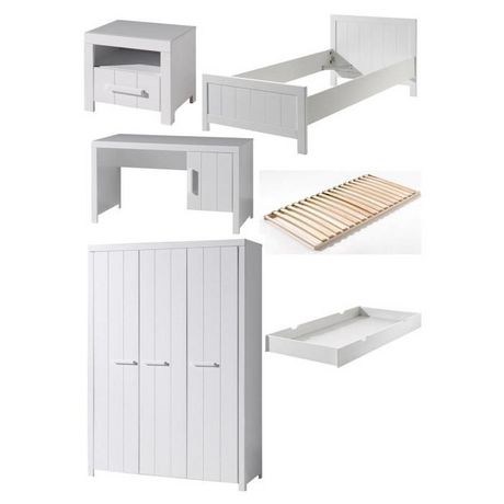 ERIK Lit simple + Chevet + bureau + lit gigogne + Sommier + Armoire 3 portes