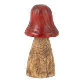 Champignon Déco en Bois Cloche 32cm Naturel & Rouge