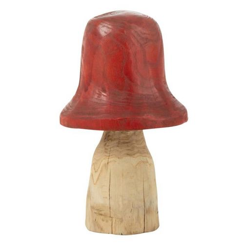 Champignon Déco en Bois Cloche 42cm Naturel & Rouge