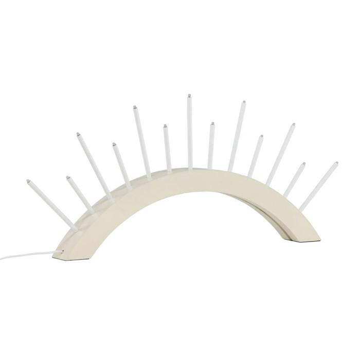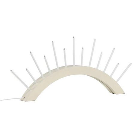 Informations Techniques : Dimensions : L. 55 x l. 6 x H. 30 cm Matières : MDF & PVC Spécificités : Design & Original Chandelier design Avec 13 bougies LED Forme arrondie Diffuse une lumière chaleureuse Douille : E5 Puissance : 7,2W Poids : 1,28 kg Couleur : Beige