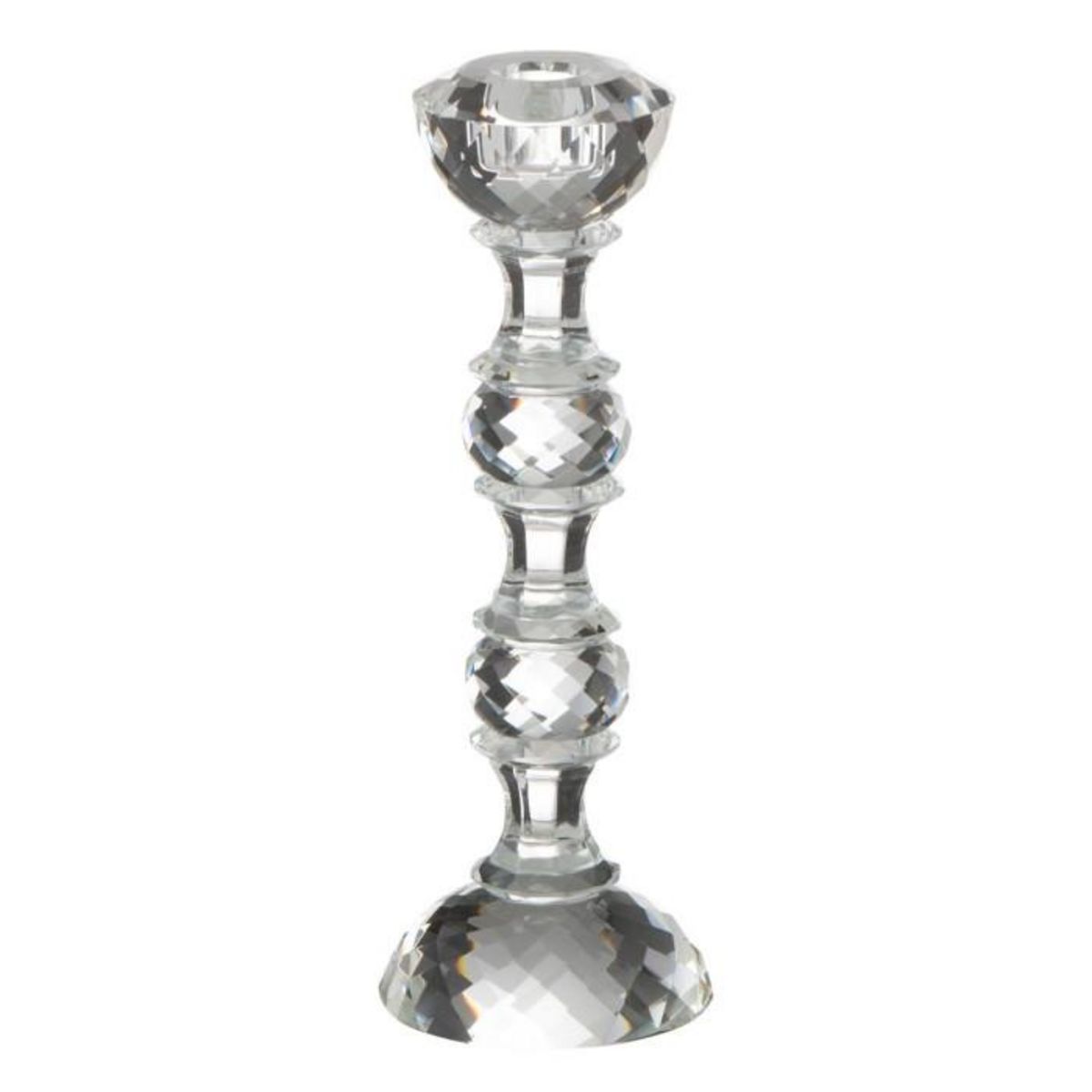 Informations Techniques : Dimensions : D. 9 x H. 26 cm Matière : 100% Cristal Spécificités : Élégant & Déco Chandelier design Effet diamant Bougie non incluse Vendu à l'unité Poids : 0,75 kg Couleur : Transparent