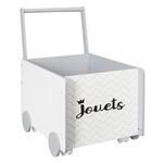 Informations Techniques : Dimensions : L. 35 x l. 47 x H. 48 cm Matières : Bois & MDF Spécificités : Pratique & Utile Chariot de Rangement Pour Enfant Sur Roulettes A Motifs Facile d'entretien & d'utilisation Couleur : Blanc & Gris