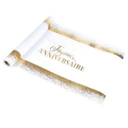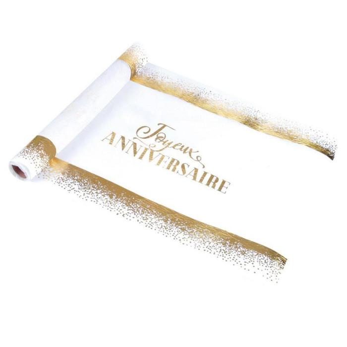 Chemin de Table Jetable Birthday 28cmx5m Blanc & Or