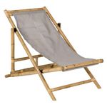 Informations Techniques : Dimensions : L. 115 x l. 73,5 x H. 84,5 cm Assise : L. 63 x l. 60 x H. 38 cm Matières : Rotin, Bambou & Textilène Spécificités : Pratique & Tendance Position dossier ajustable Corps en bambou Poids max supporté : 80 kg Poids : 8,1 kg Couleur : Naturel & Gris