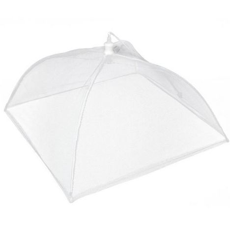 Informations Techniques : Dimensions : L. 30 x l. 30 cm Matières : Polyester & Métal Spécificités : Pratique & Utile Cloche Alimentaire Pliante Tirer pour ouvrir Protection anti-insectes Couleur : Blanc