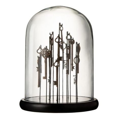 Cloche en Verre Clés 30cm Marron