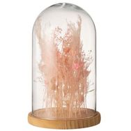 Cloche en Verre Déco Fleurs Séchées 38cm Rose