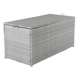 Informations Techniques : Dimensions : L. 130 x l. 60 x H. 61 cm Matières : Osier & Acier Spécificités : Pratique & Utile Coffre rectangulaire Avec poignées Effet osier Résistant aux UV Poids max supporté : 20 kg Poids : 17,5 kg Couleur : Gris