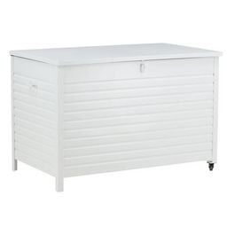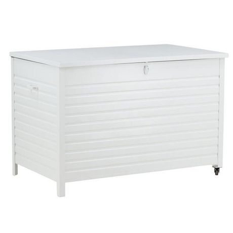 Informations Techniques : Dimensions : L. 150 x l. 90 x H. 100 cm Matière : Aluminium Spécificités : Moderne & Pratique Coffre sur pied Avec roulettes Forme rectangulaire Poids : 33,7 kg Couleur : Blanc
