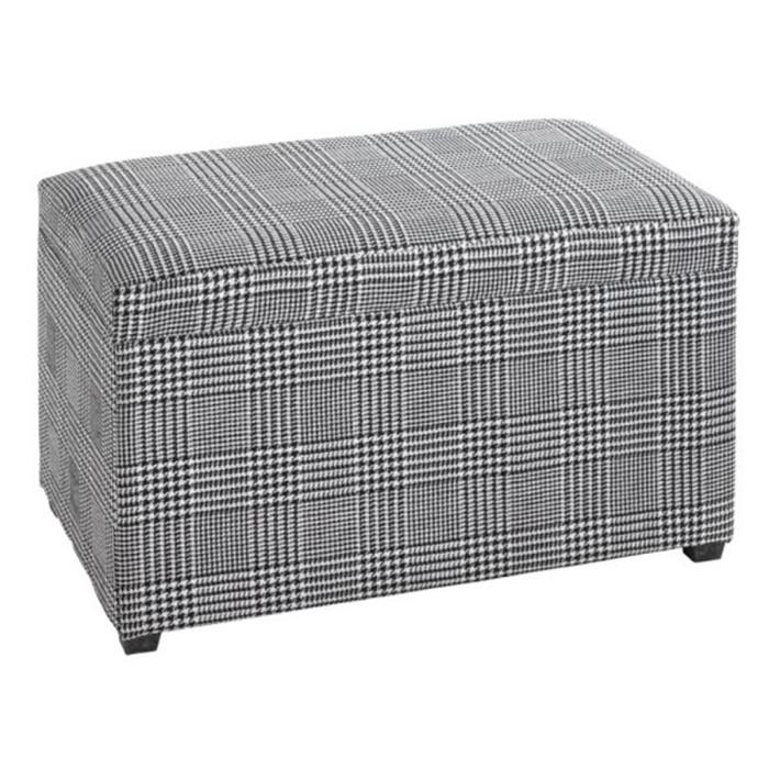 Informations Techniques : Dimensions : L. 65 x l. 40 x H. 42 cm Matières : MDF & Tissu Spécificités : Pratique & Tendance Coffre de Rangement Forme Rectangulaire Assise Rembourrée & Pliable Imprimé Carreaux Livré monté Nombre de colis : 1 Poids : 7,74 kg Couleur : Noir & Blanc