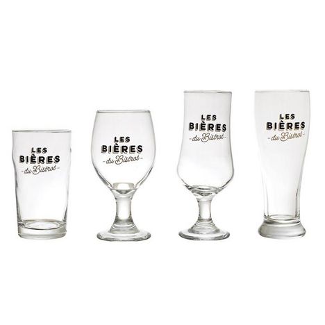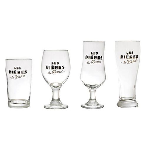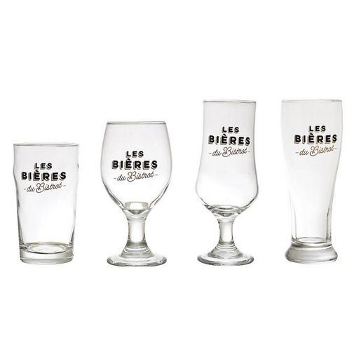 Informations Techniques : Dimensions : L. 7,3 x l. 7,3 x H. 19,2 cm Matière : 100% Verre Spécificités : Pratique & Utile Coffret 4 verres à bière Inscriptions les bières du bistrot Contient : 1 x verre de 46 cl 1 x verre de 41 cl 1 x verre de 40,5 cl 1 x verre de 47 cl Poids : 1,1 kg Couleur : Tra