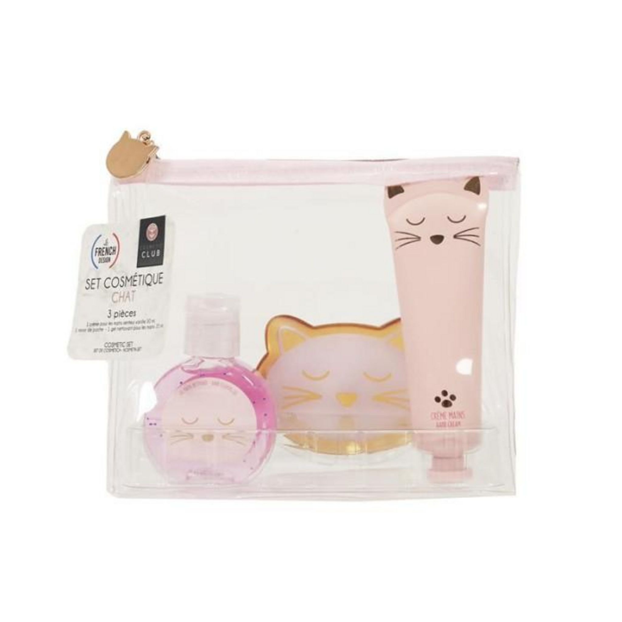 Coffret Cosmétique 3 Accessoires Chat 15cm Rose