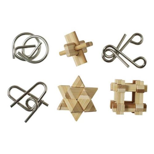 Informations Techniques : Dimensions : L. 4,1 x l. 4,1 x H. 5 cm Matières : 50% MDF & 50% Métal Spécificités : Ludique & Fun Coffret de 6 mini casse-têtes Poids : 0,48 kg Couleur : Naturel & Gris