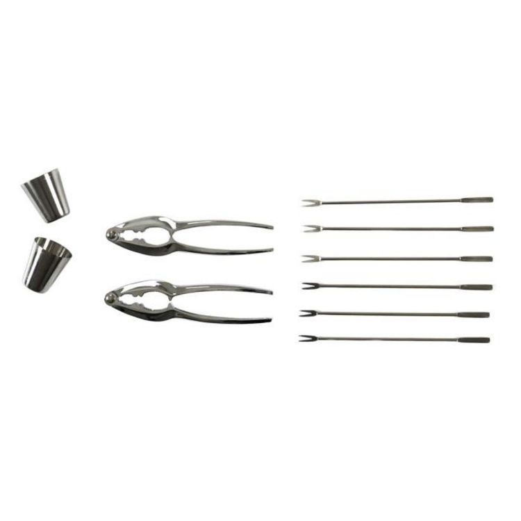 Informations Techniques : Dimensions : L. 15 x l. 3,4 x H. 1 cm Matière : Acier Inoxydable Spécificités : Pratique & Utile Coffret ustensiles à crustacés Contient : 2 x petits bols 6 x piques fourchettes 2 x pinces Compatible : Lave-vaisselle Poids : 0,26 kg Couleur : Argent
