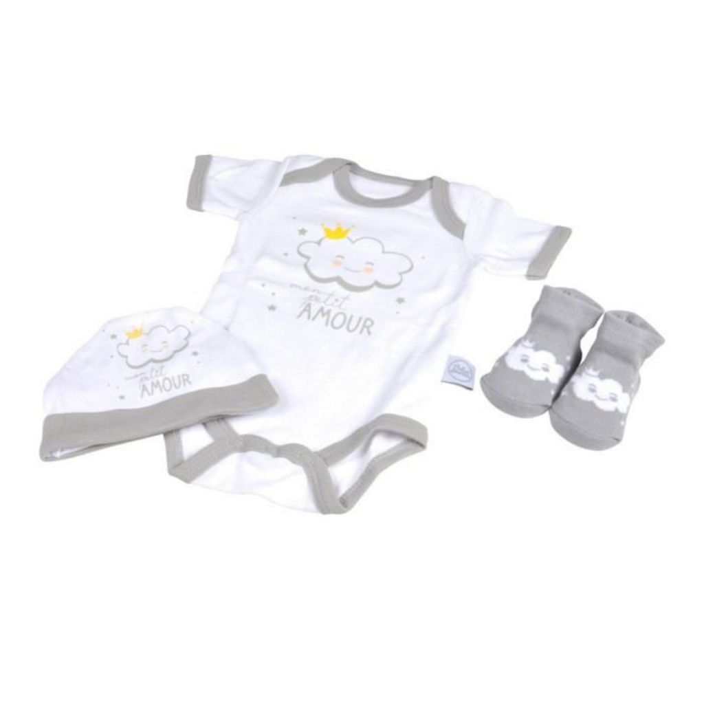 Coffret Naissance 3 Pièces Nuage 0 à 1 Mois Gris