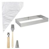 Informations Techniques : Dimensions : L. 26 x l. 26 x H. 4,5 cm Douille : L. 2,5 x l. 3,4 cm Moule : L. 24 x l. 11,2 x l. 3 cm Pinceau : L. 24 cm Zesteur : L. 16 x l. 2,5 cm Matières : Bois (Hêtre), Silicone, Métal, Acier inoxydable & Polyéthylène Spécificités : Pratique & Utile Coffret Pâtisserie