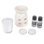 Contient 1 brûle parfum, 2 bougies chauffe-plat, 1 bougie verrine & 2 huiles