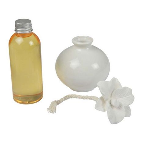 Informations Techniques : Matière : Céramique Spécificités : Tendance & Chic Coffret Senteur Contient : 1 Diffuseur 1 Fleur en Céramique Senteur : Mangue Contenance : 100 ml Poids : 0,331 kg Couleur : Blanc & Orange