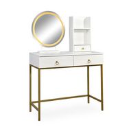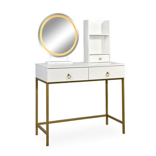 Coiffeuse Avec Miroir Lumineux Essie 125cm Blanc & Or