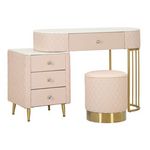 Coiffeuse Avec Pouf Effet Marbre Sharon 120 Rose & Or