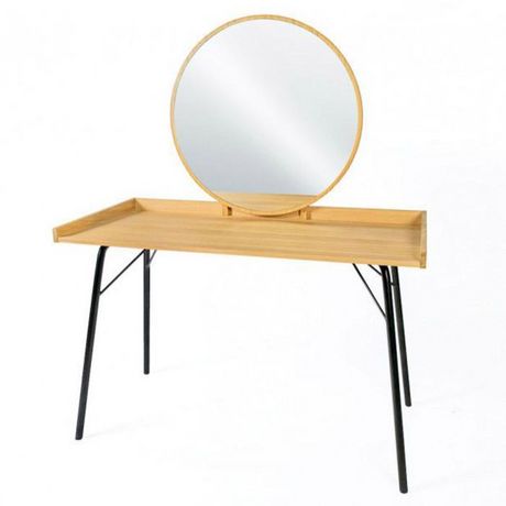 Informations Techniques : Dimensions : L. 115 x l. 52 x H. 78 cm Matière : Bois (Chêne) Spécificités : Pratique & Tendance Coiffeuse Design Avec Miroir Forme Rectangulaire Facile d'Utilisation & d'Entretien Poids : 15 kg Couleur : Naturel & Noir