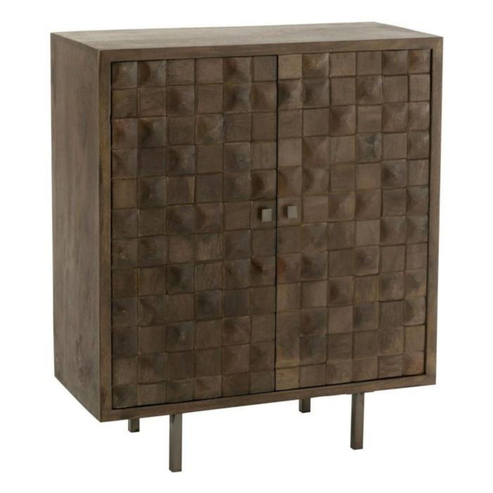 Informations Techniques : Dimensions : L. 89 x l. 42 x H. 104 cm Matières : 60% Bois (Manguier), 20% Métal & 20% MDF Spécificités : Pratique & Déco Commode sur pied Avec 2 portes Forme rectangulaire Poids max supporté : 50 kg Poids : 42 kg Couleur : Marron & Gris