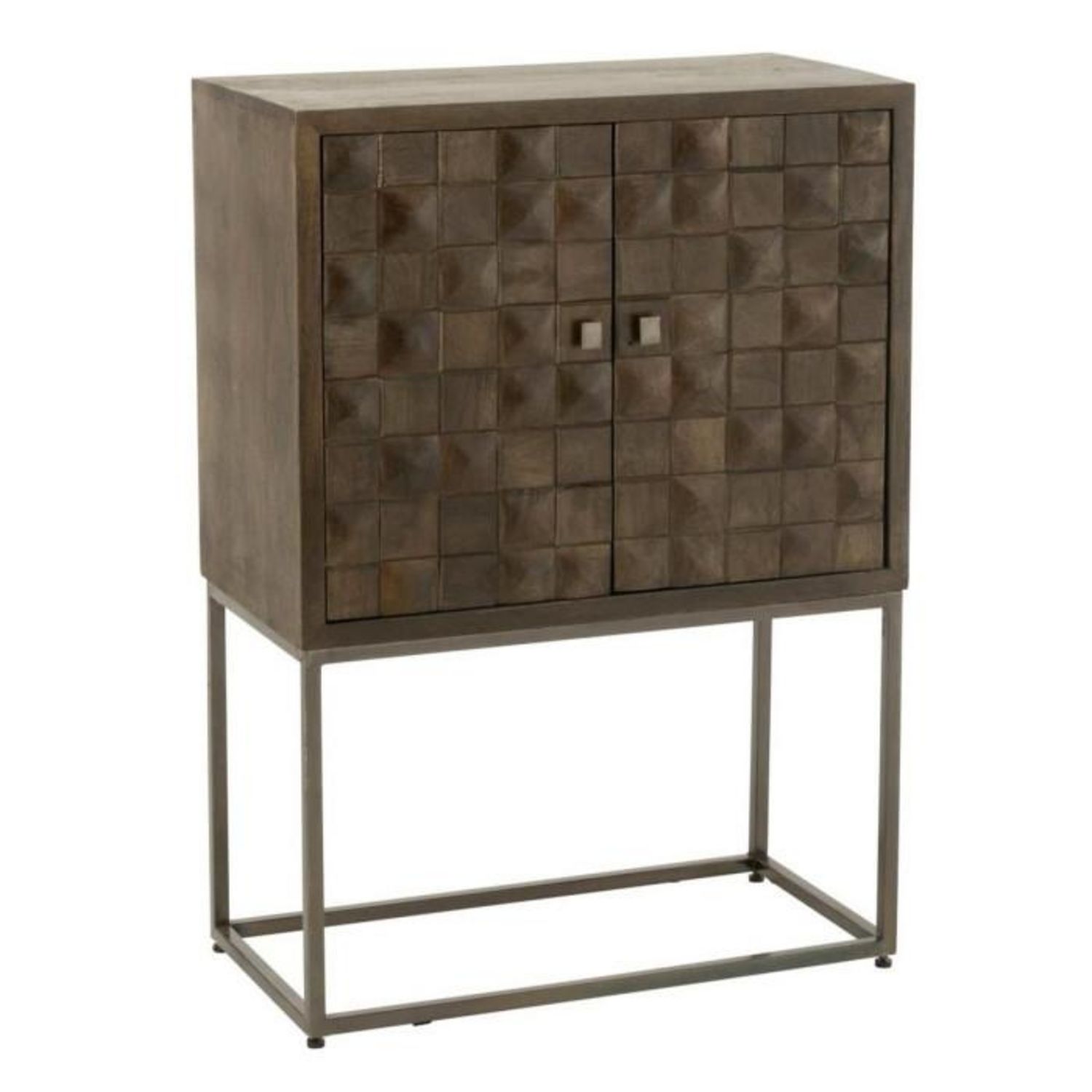 Informations Techniques : Dimensions : L. 76 x l. 40 x H. 122 cm Matières : 60% Bois (Manguier), 25% Métal & 15% MDF Spécificités : Pratique & Déco Commode sur pied Avec 2 portes Forme rectangulaire Poids max supporté : 40 kg Poids : 34,4 kg Couleur : Marron & Gris