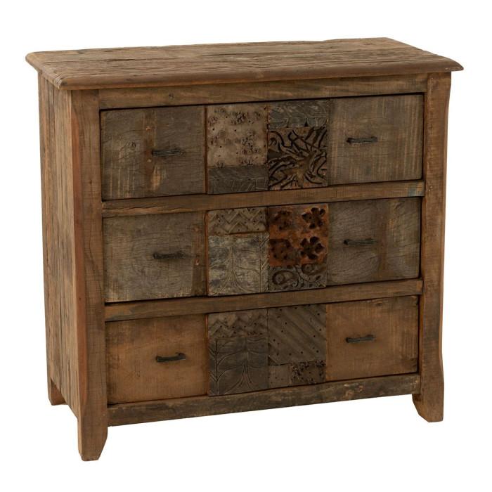 Informations Techniques : Dimensions : L. 100 x l. 50 x H. 95 cm Matière : Bois Spécificités : Déco & Utile Commode vintage Effet vieilli 3 tiroirs Forme rectangulaire Motifs pouvant variés selon arrivage Poids : 71 kg Couleur : Marron