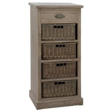 Informations Techniques : Dimensions : L. 49 x l. 33 x H. 107 cm Matière : (70%) Bois & (30%) Rotin Spécificités : 4 paniers intégrés Simple & pratique d'utilisation Poids : 19kg Couleur : Naturel