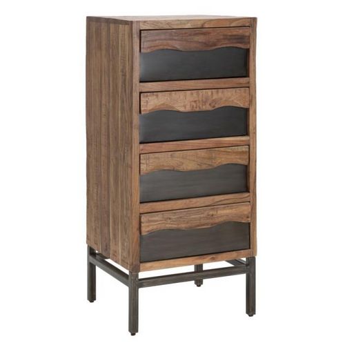 Informations Techniques : Dimensions : L. 45 x l. 40 x H. 100 cm Tiroirs intérieurS : L. 36 x l. 31 x H. 14 cm Piètement : H. 21 cm Matières : Structure : Bois (Acacia & Contreplaqué) Piètement : Métal Spécificités : Pratique & Robuste Commode sur pieds Avec 4 tiroirs Forme rectangulaire Poids : 3