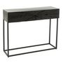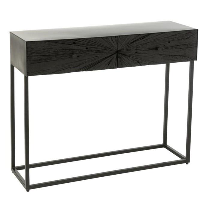 Informations Techniques : Dimensions : L. 100 x l. 33 x H. 81 cm Matières : 50% Bois (Recyclé) & 50% Métal Spécificités : Tendance & Pratique Console 2 tiroirs Forme rectangulaire Poids : 22,5 kg Couleur : Noir