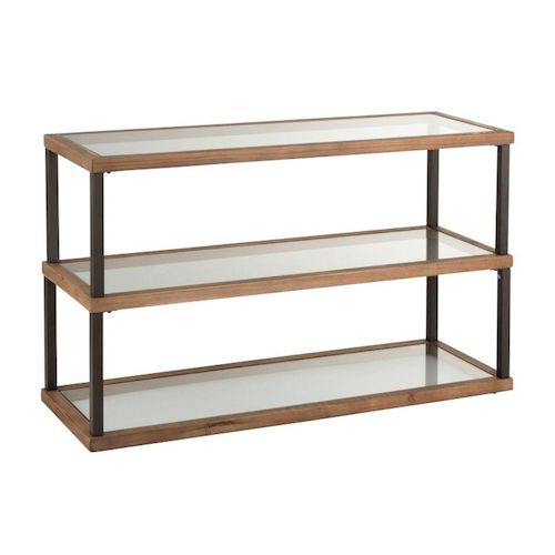 Décorez votre entrée avec la console 3 niveaux qui marient 3 matériaux : bois métal et verre