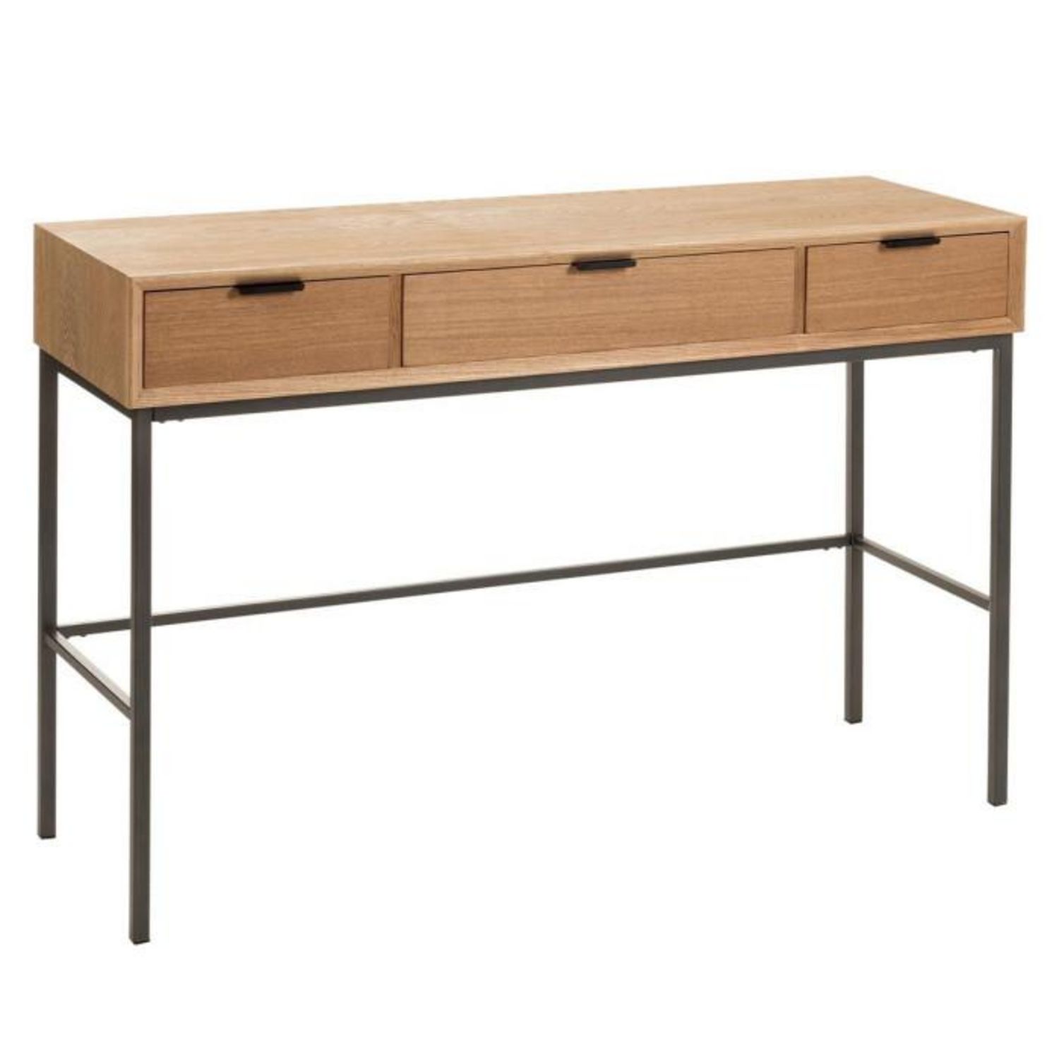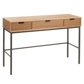 Informations Techniques : Dimensions : L. 120 x l. 41 x H. 76 cm Matières : Bois & Métal Spécificités : Original & Tendance Console Design 3 Tiroirs Piètement en Métal A monter soi-même Poids : 16 kg Couleur : Naturel