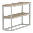 Informations Techniques : Dimensions : L. 110 x l. 30 x H. 70 cm Plateau : H. 1,8 cm Matières : Revêtement : MDF & Papier stratifié Piètement : Acier Spécificités : Intemporelle & Élégante Console design Avec 2 étagères Revêtement en poudre Nombre de colis : 1 Poids max supporté : 30 kg Poids : 18,