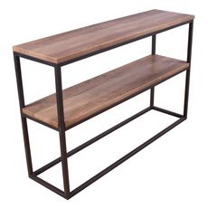 Informations Techniques : Dimensions : L. 110 x l. 30 x H. 70 cm Matières : Revêtement : MDF & Papier stratifié Piètement : Acier Spécificités : Intemporelle & Élégante Console design Avec 2 étagères Effet teck Nombre de colis : 1 Poids max supporté : 30 kg Poids : 18,5 kg Couleur : Naturel & Noir