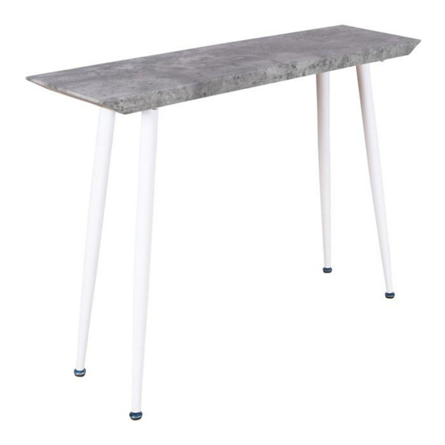 Informations Techniques : Dimensions : L. 110 x l. 30 x H. 80 cm Plateau : H. 4 cm Matières : Revêtement : MDF Piètement : Acier Spécificités : Moderne & Élégante Console design Aspect béton Revêtement en poudre Nombre de colis : 2 Poids max supporté : 40 kg Poids : 13 kg Couleur : Blanc