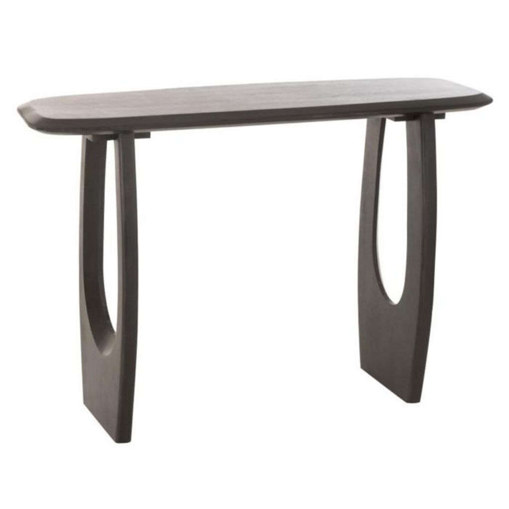 Informations Techniques : Dimensions : L. 120 x l. 30 x H. 70 cm Matière : 100% Bois (Manguier) Spécificités : Utile & Originale Console rectangulaire Design arrondi À monter soi-même Poids : 19,36 kg Couleur : Noir