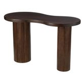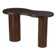 Informations Techniques : Dimensions : L. 120 x l. 64 x H. 75 cm Matière : 100% Bois (Manguier) Spécificités : Élégante & Originale Console design Plateau forme unique Pieds cylindriques Poids : 17,5 kg Couleur : Marron