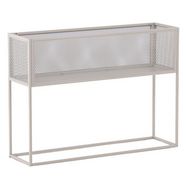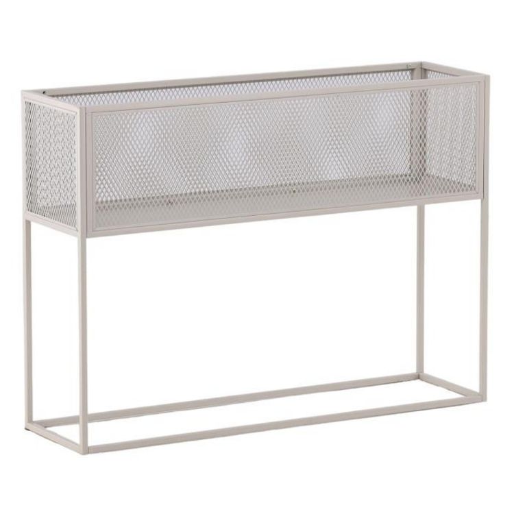 Informations Techniques : Dimensions : L. 110 x l. 30 x H. 80 cm Matière : Acier Spécificités : Moderne & Pratique Console design ajouré Revêtement en poudre de résine époxy Nombre de colis : 1 Poids max supporté : 15 kg Poids : 8,2 kg Couleur : Beige
