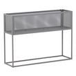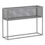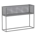 Informations Techniques : Dimensions : L. 110 x l. 30 x H. 80 cm Matière : Acier Spécificités : Moderne & Pratique Console design ajouré Revêtement en poudre de résine époxy Nombre de colis : 1 Poids max supporté : 15 kg Poids : 8,2 kg Couleur : Gris Clair