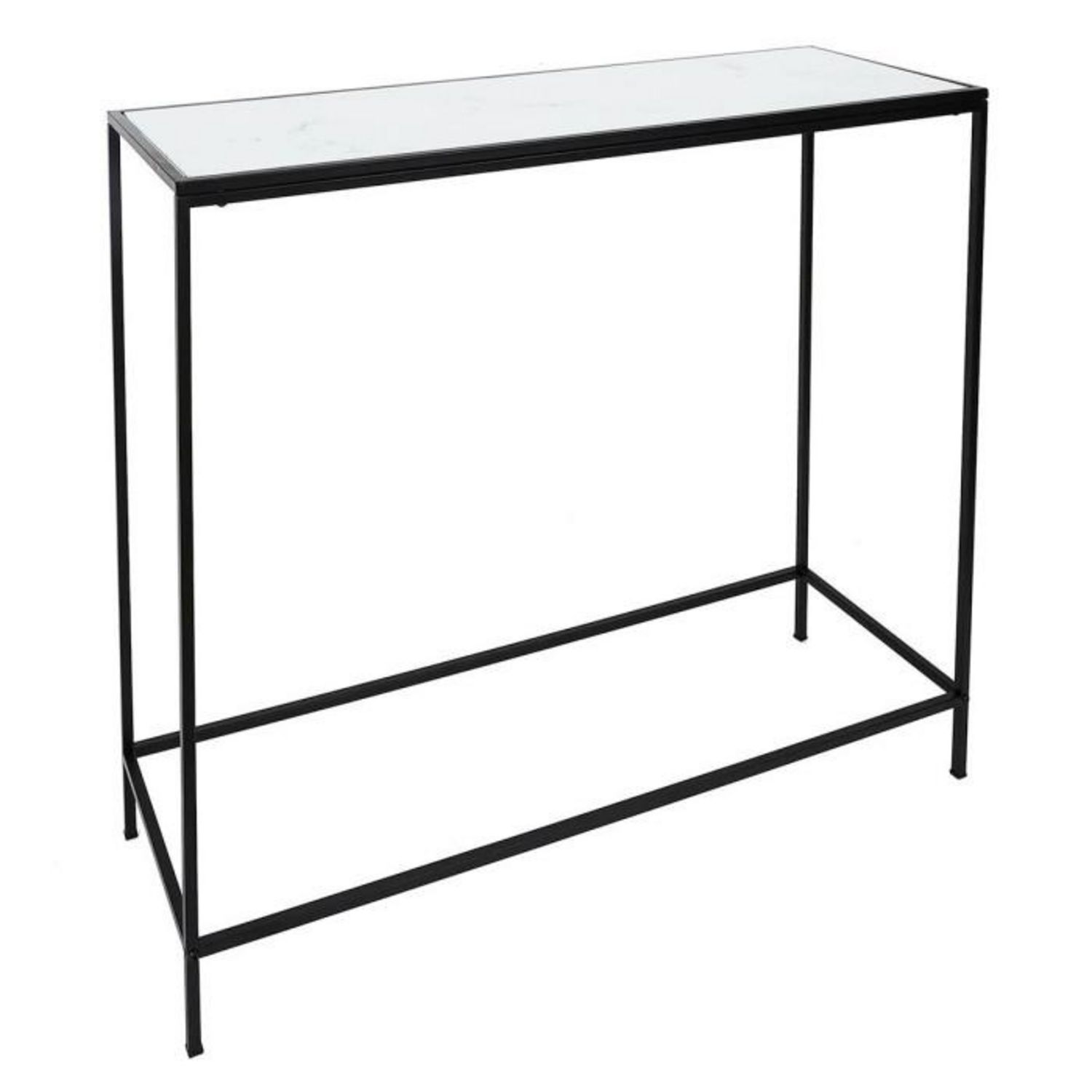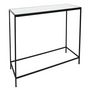 Informations Techniques : Dimensions : L. 100 x l. 32 x H. 87 cm Matières : Métal & Verre Spécificités : Pratique & Utile Console design Plateau en verre trempé Poids : 7,35 kg Couleur : Noir & Blanc
