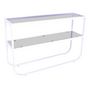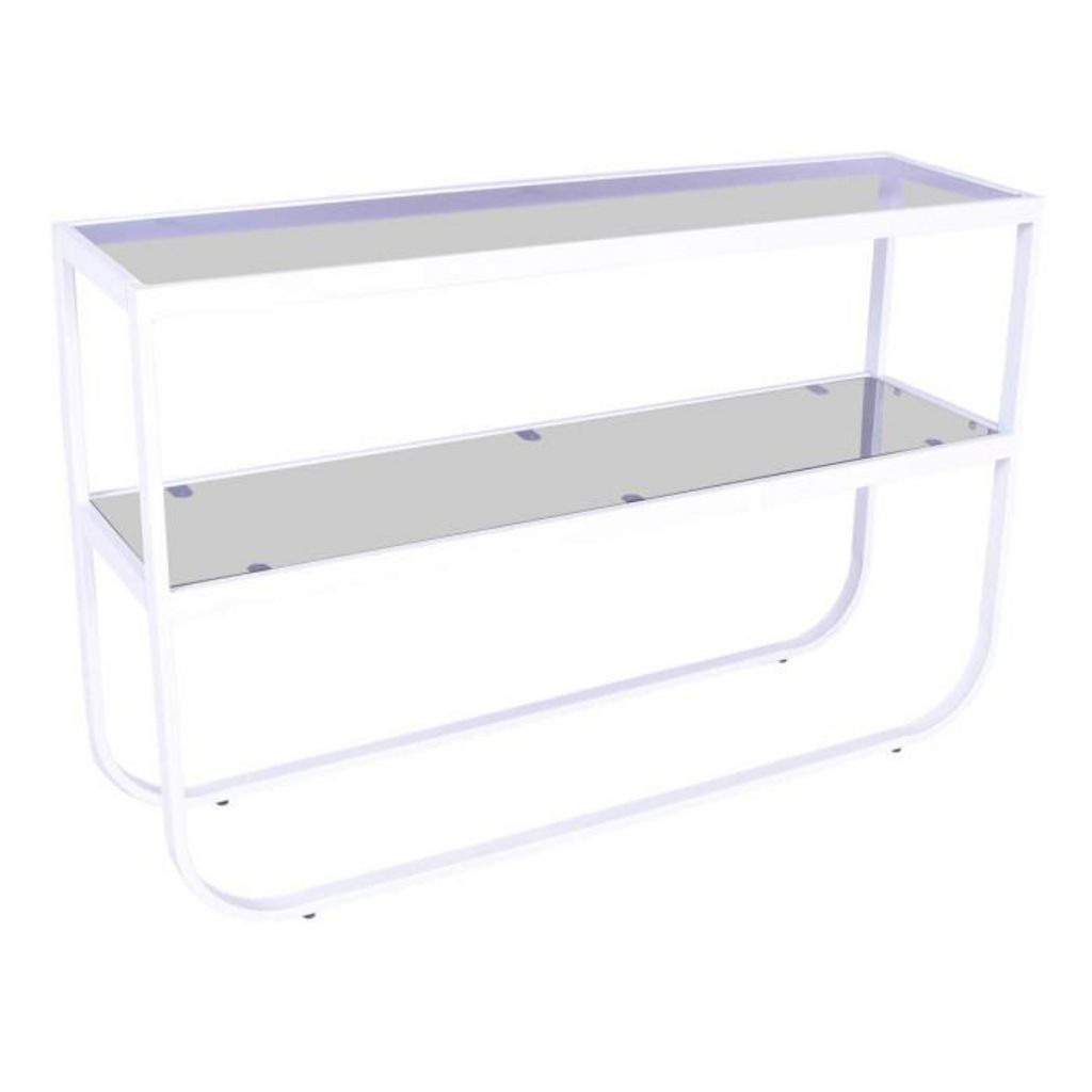 Informations Techniques : Dimensions : L. 110 x l. 30 x H. 70 cm Matières : Verre & Acier Spécificités : Élégante & Moderne Console design Plateau en verre Revêtement en poudre Nombre de colis : 2 Poids : 24,8 kg Couleur : Blanc