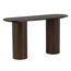 Informations Techniques : Dimensions : L. 130 x l. 40 x H. 72 cm Plateau : H. 1,8 cm Matières : MDF & Placage Spécificités : Moderne & Élégante Console ovale Piètement design nervuré Finition laquée Nombre de colis : 2 Poids max supporté : 15 kg Poids : 25 kg Couleur : Marron