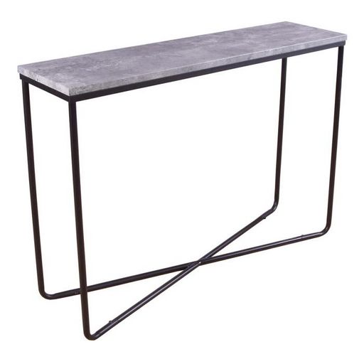 Informations Techniques : Dimensions : L. 110 x l. 30 x H. 80 cm Plateau : H. 2 cm Matières : MDF, Papier stratifié & Acier Spécificités : Élégante & Moderne Console design Plateau effet béton Revêtement en poudre Nombre de colis : 2 Poids max supporté : 80 kg Poids : 14,88 kg Couleur : Gris Foncé &