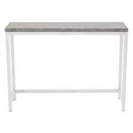 Informations Techniques : Dimensions : L. 110 x l. 30 x H. 80 cm Plateau : H. 3 cm Matières : Revêtement : MDF & Papier stratifié Piètement : Acier Spécificités : Intemporelle & Élégante Console design Plateau imitation béton Revêtement en poudre Nombre de colis : 1 Poids max supporté : 30 kg Poids