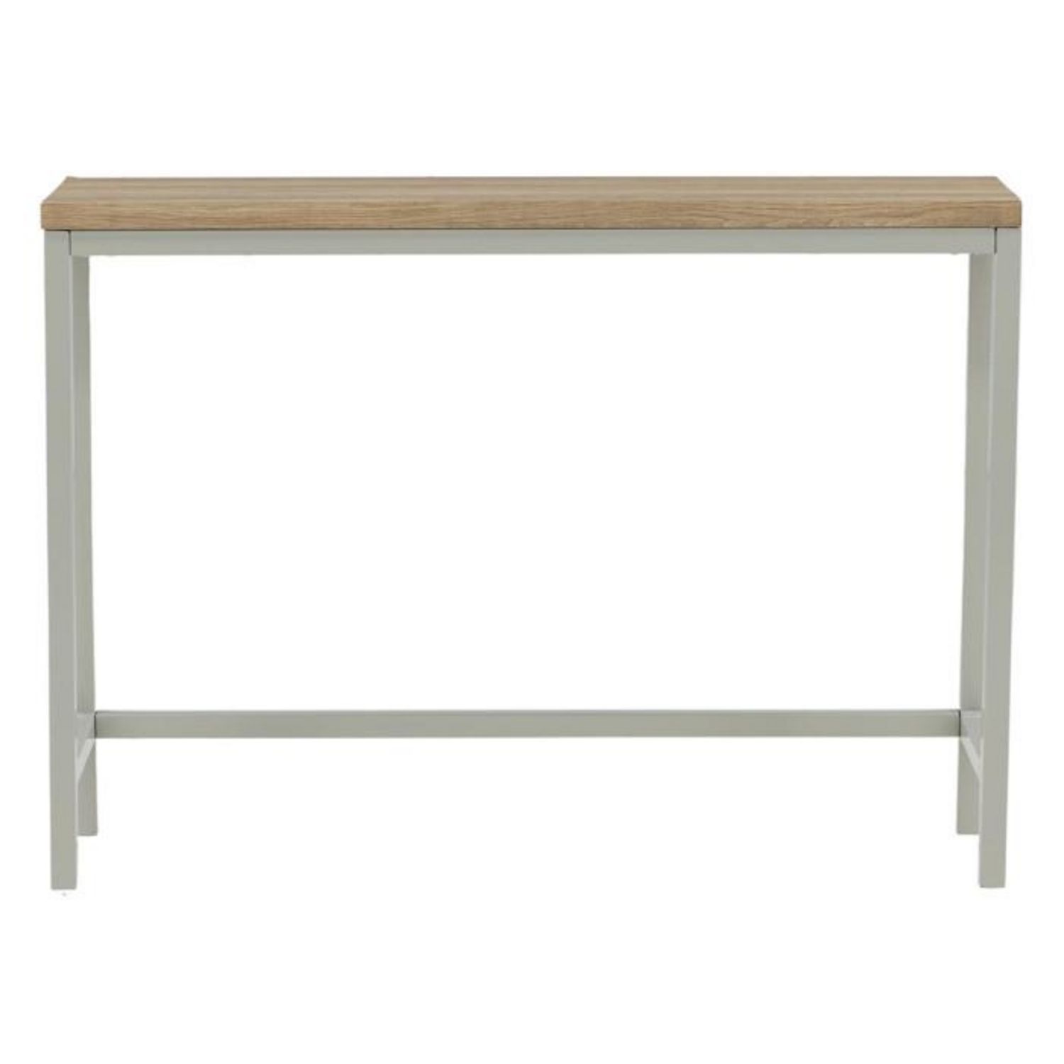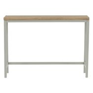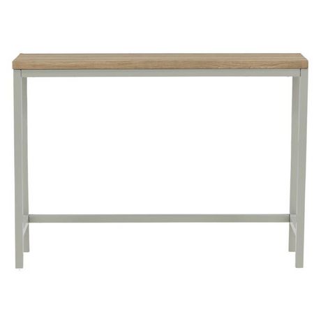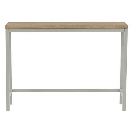 Informations Techniques : Dimensions : L. 110 x l. 30 x H. 80 cm Plateau : H. 1,8 cm Matières : Revêtement : MDF & Papier stratifié Piètement : Acier Spécificités : Intemporelle & Élégante Console design Revêtement en poudre Nombre de colis : 1 Poids : 12,5 kg Couleur : Naturel & Gris