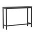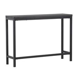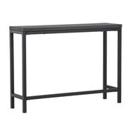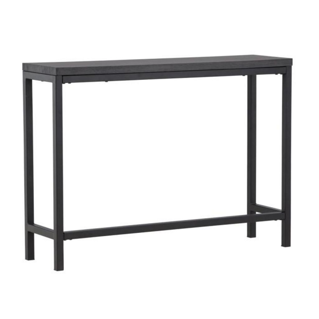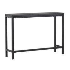 Informations Techniques : Dimensions : L. 110 x l. 30 x H. 80 cm Plateau : H. 3 cm Matières : Plateau : MDF Piètement : Acier Spécificités : Pratique & Tendance Console design Pieds recouvert de poudre noire Forme rectangulaire Nombre de colis : 1 Poids max supporté : 50 kg Poids : 14,4 kg Couleur
