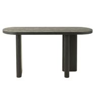 Informations Techniques : Dimensions : L. 150 x l. 50 x H. 75 cm Matière : Bois de teck Spécificités : Moderne & Intemporelle Console design Forme ovale Capacité de charge maximale : 80 kg A monter soi-même Poids : 27,85 kg Couleur : Noir
